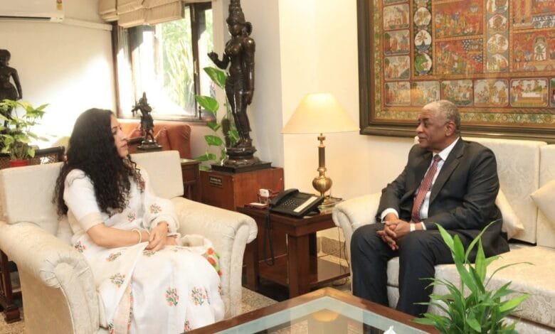 وبجث السفير خلال لقائه بالسفيرة نانديني سنغالا، المدير العام للمجلس الهندي للعلاقات الثقافية سبل توسيع التعاون الأكاديمي مع المجلس وزيادة فرص التعليم العالي للطلاب السودانيين في الجامعات الهندية.