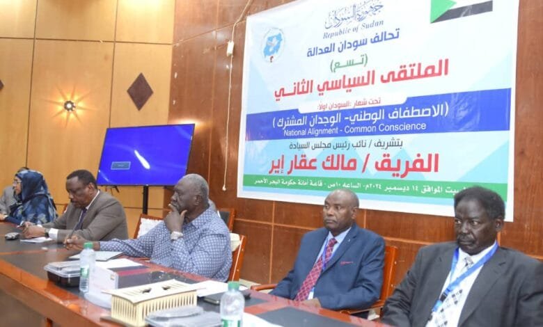 الملتقى السياسي الثاني لتحالف سودان العدالة (تسع) تحت شعار السودان أولا (الاصطفاف الوطني – الوجدان المشترك) إلى تغيير الخطاب السياسي وتقوية الصف الوطني والتفكير الجاد في تحقيق الاستقرار وتعزيز الأمن والسلم.