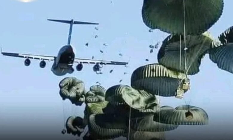 وبحسب مصادر عسكرية، تم إنزال شحنات تضمنت عتادًا عسكريًا ومواد غذائية، ومعدات طبية، ومرتبات للضباط والجنود.