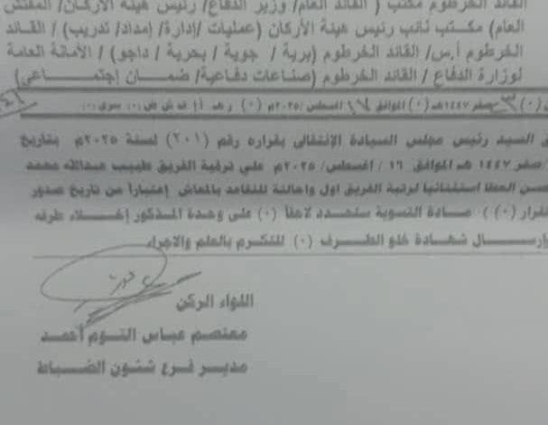 إحالة الفريق العطا للتقاعد بعد ترقية استثنائية