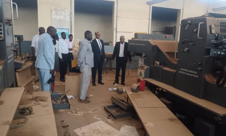 وتفقد التهامي والوفد المرافق أقسام المطبعة ووقف على حجم الخراب والدمار الذي مارسته المليشيا المتمردة